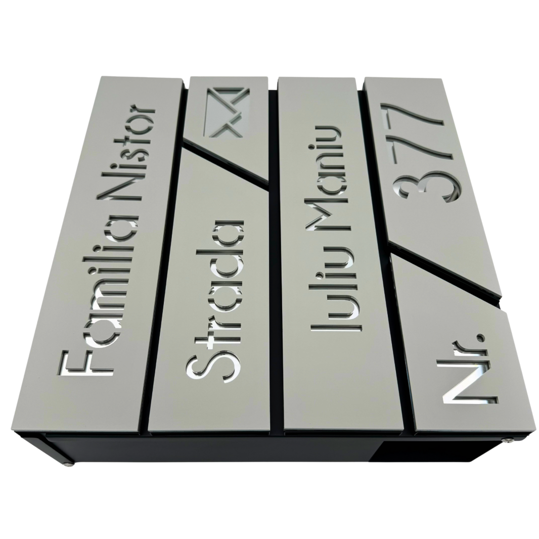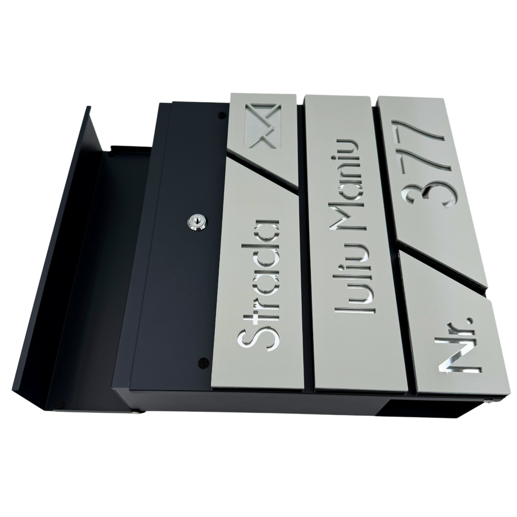 CUTIE POSTALA GRI ANTRACIT - Gri Light Satinat / Argintiu Oglinda - 37x36x11cm