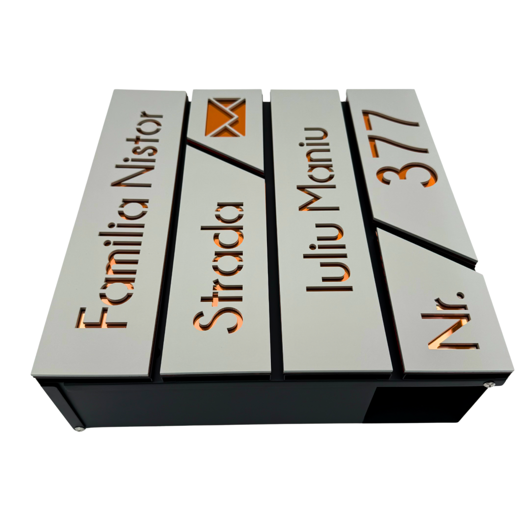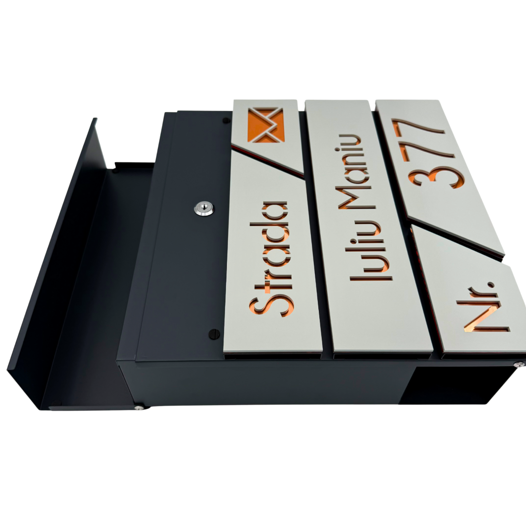 CUTIE POSTALA GRI ANTRACIT - Gri Light Satinat / Cupru Oglinda - 37x36x11cm