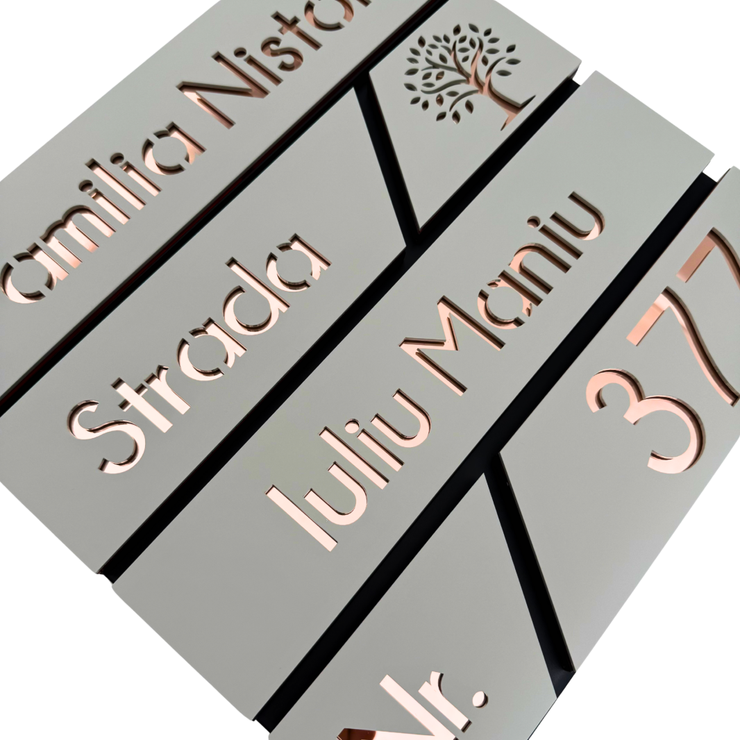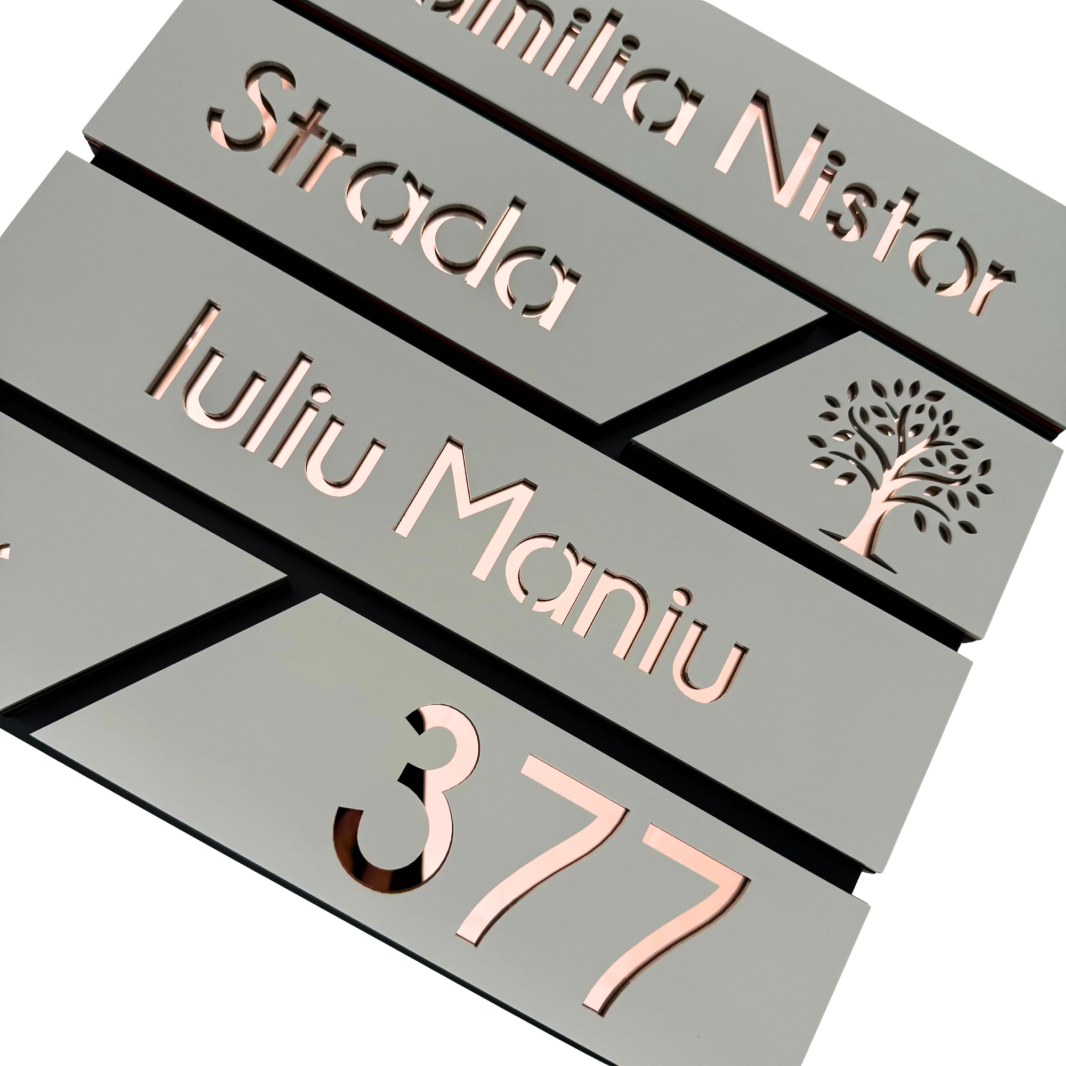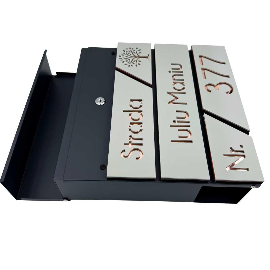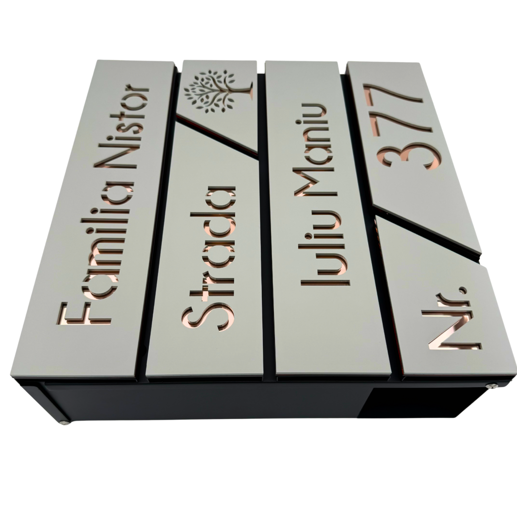 CUTIE POSTALA GRI ANTRACIT - Gri Light Satinat / Roze Auriu Oglinda - 37x36x11cm