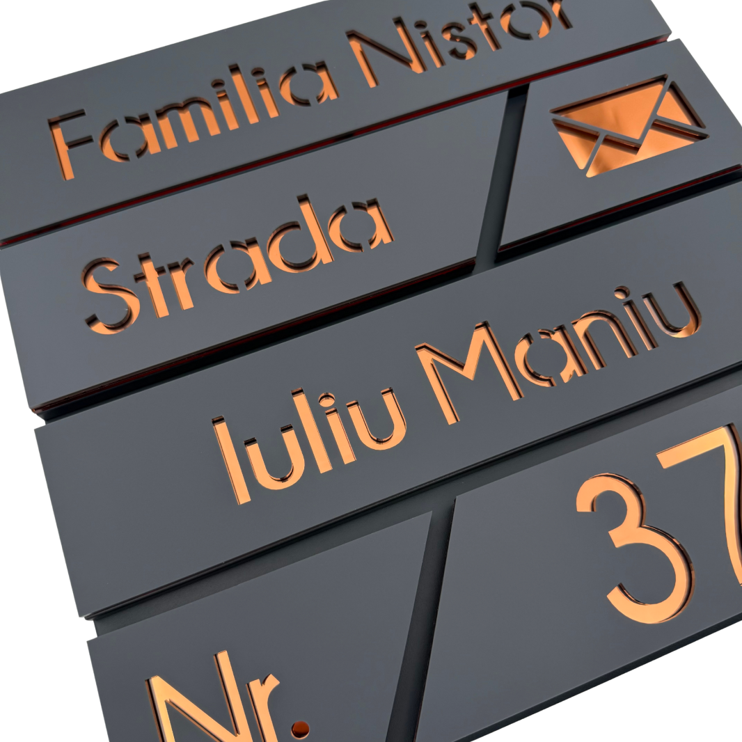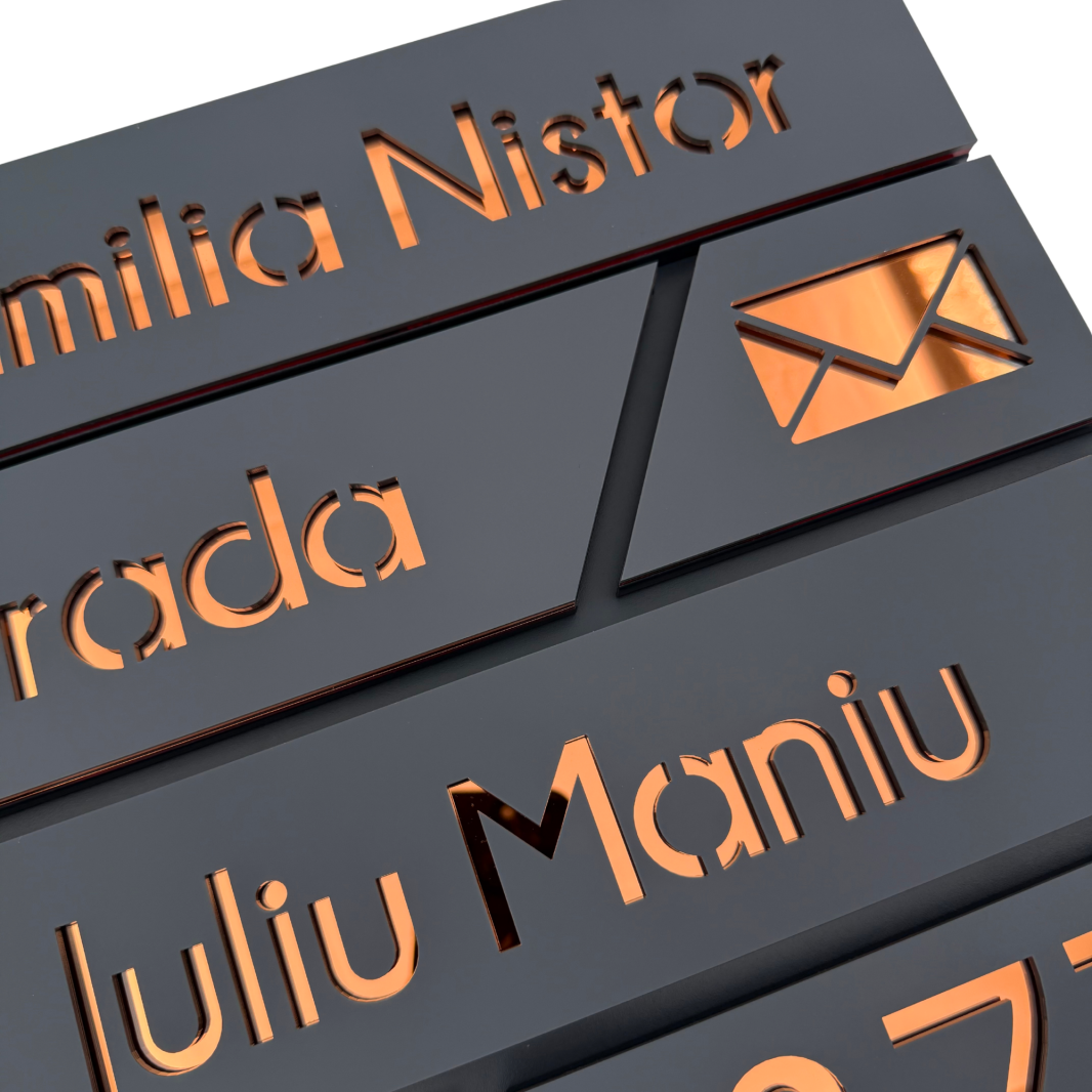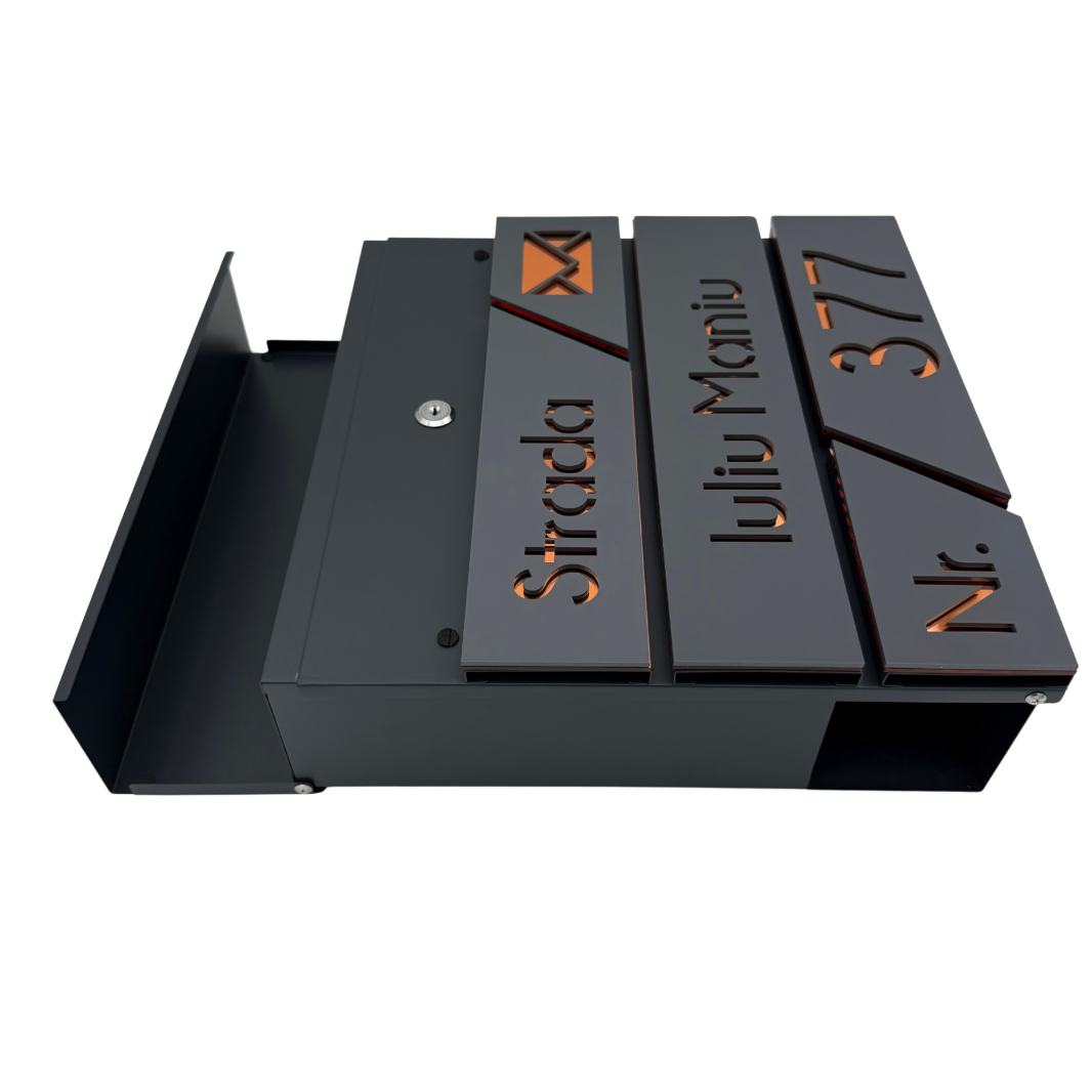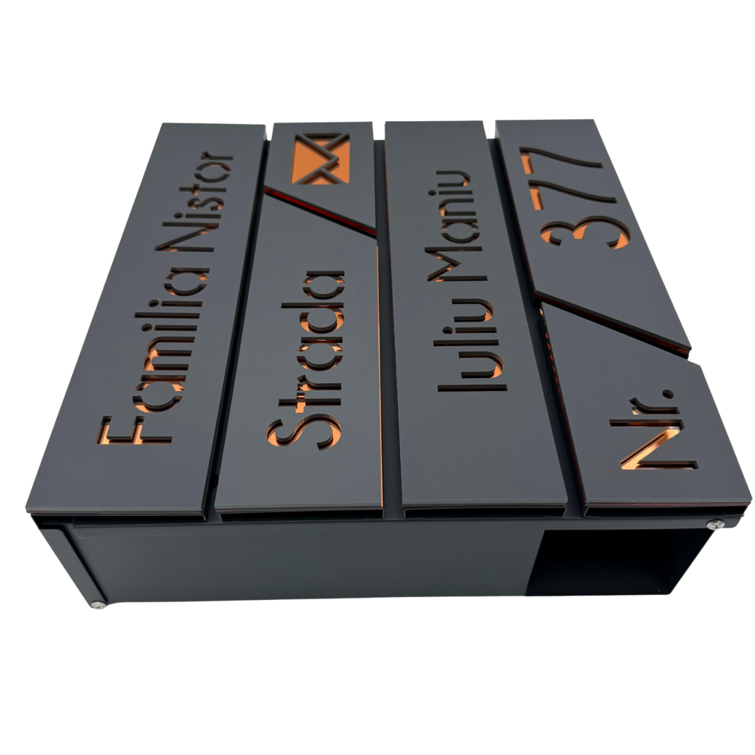 CUTIE POSTALA GRI ANTRACIT - Gri Satinat / Cupru Oglinda - 37x36x11cm