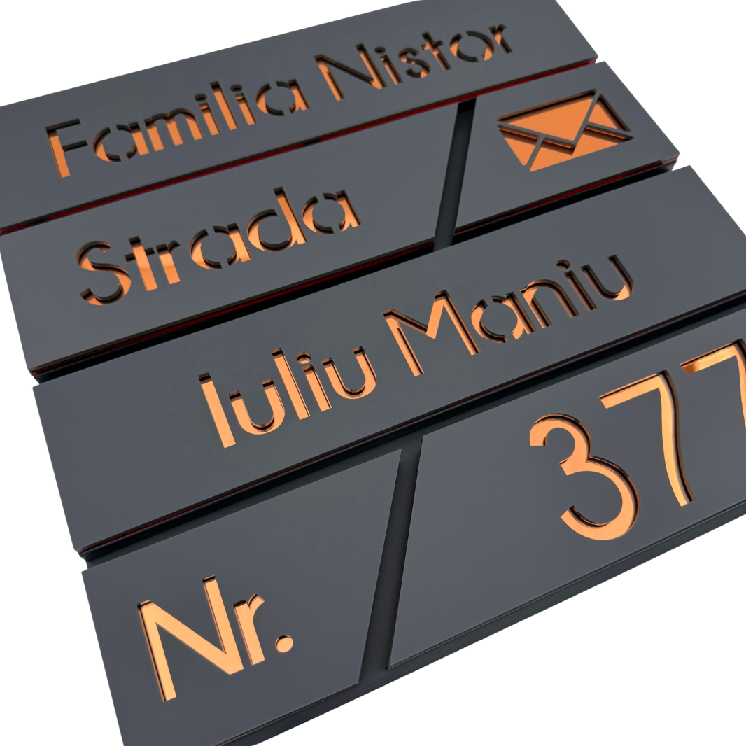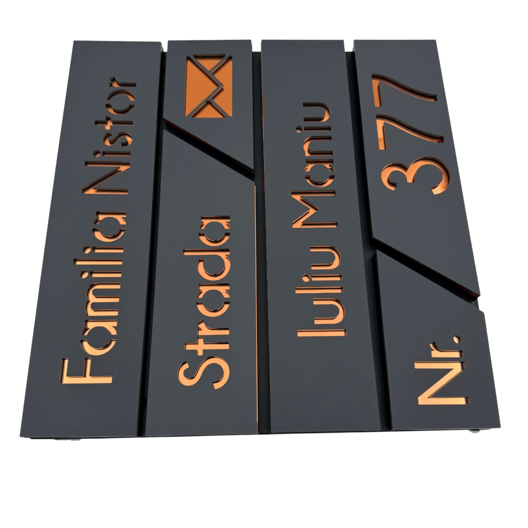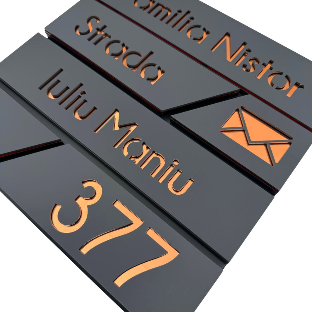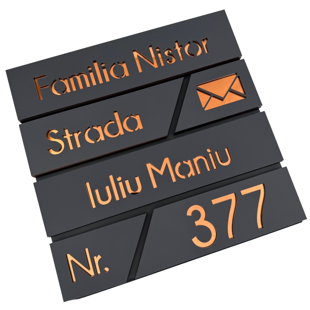 CUTIE POSTALA GRI ANTRACIT - Gri Satinat / Cupru Oglinda - 37x36x11cm