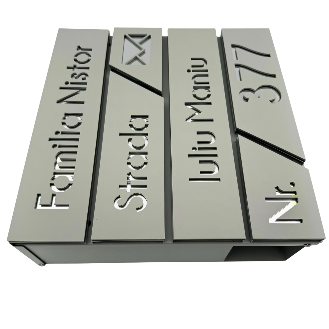 CUTIE POSTALA GRI LIGHT - Gri Light Satinat / Argintiu Oglinda - 37x36x11cm