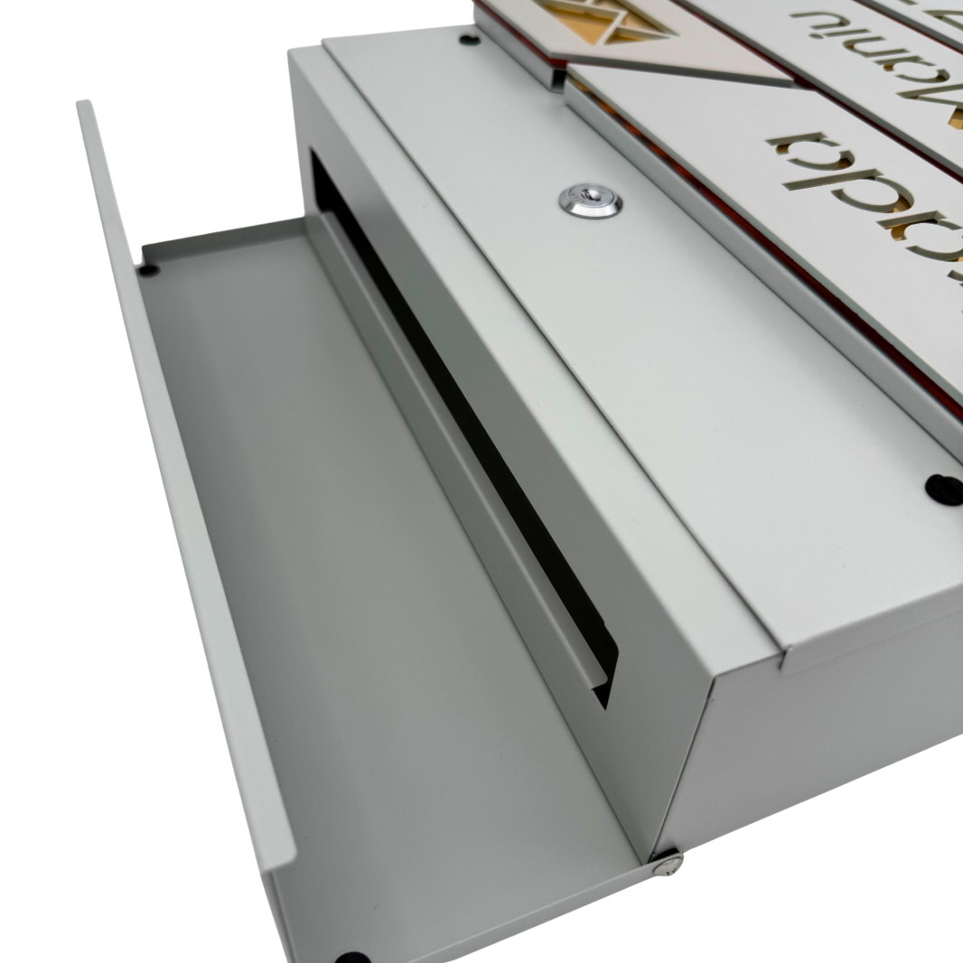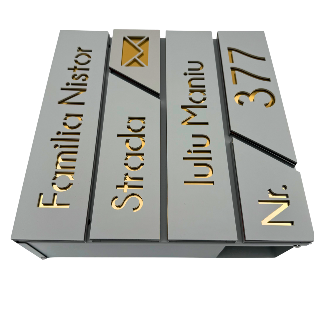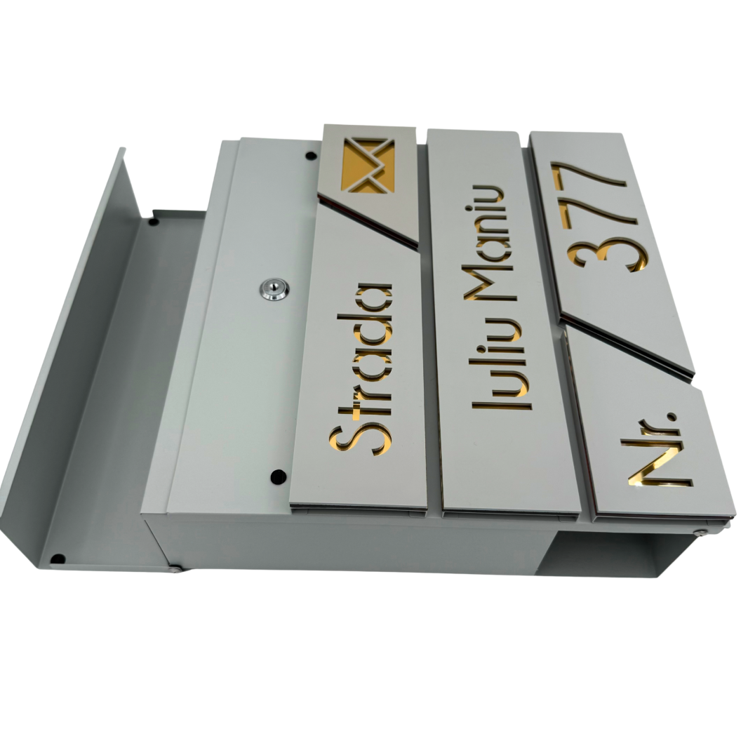 CUTIE POSTALA GRI LIGHT - Gri Light Satinat / Auriu Oglinda - 37x36x11cm