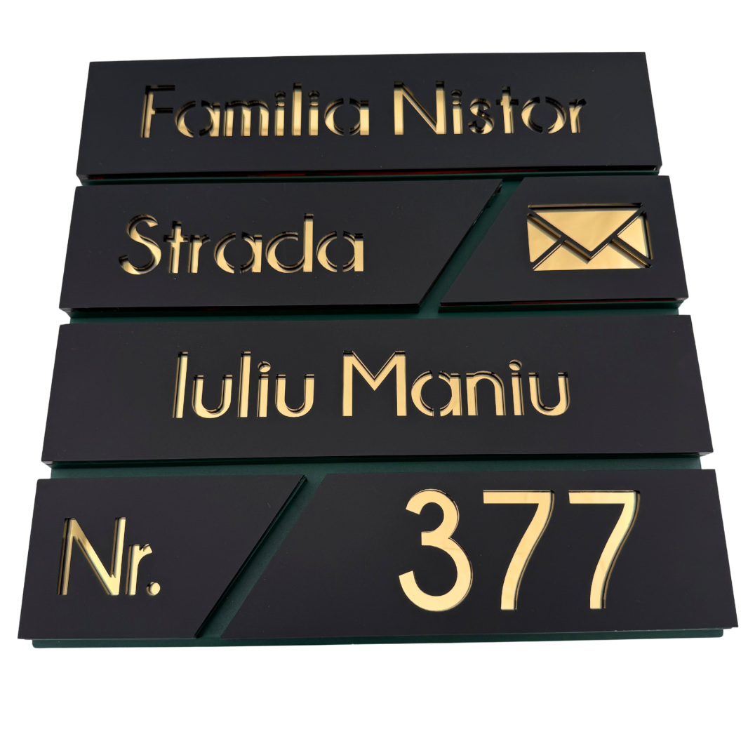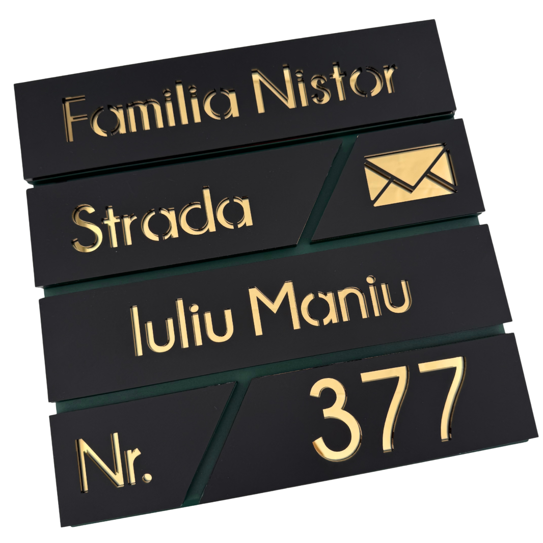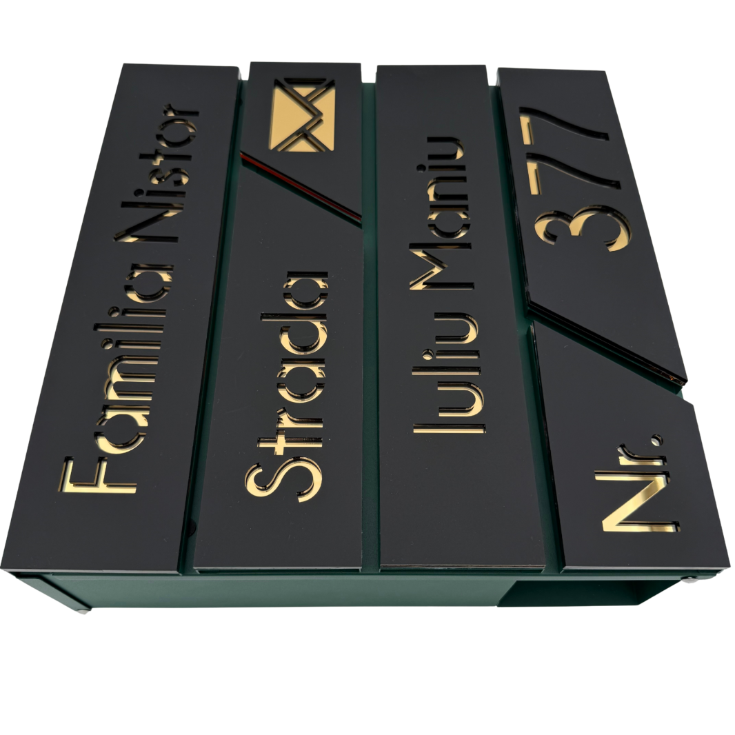 CUTIE POSTALA VERDE - Negru Satinat / Auriu Oglinda - 37x37x11cm