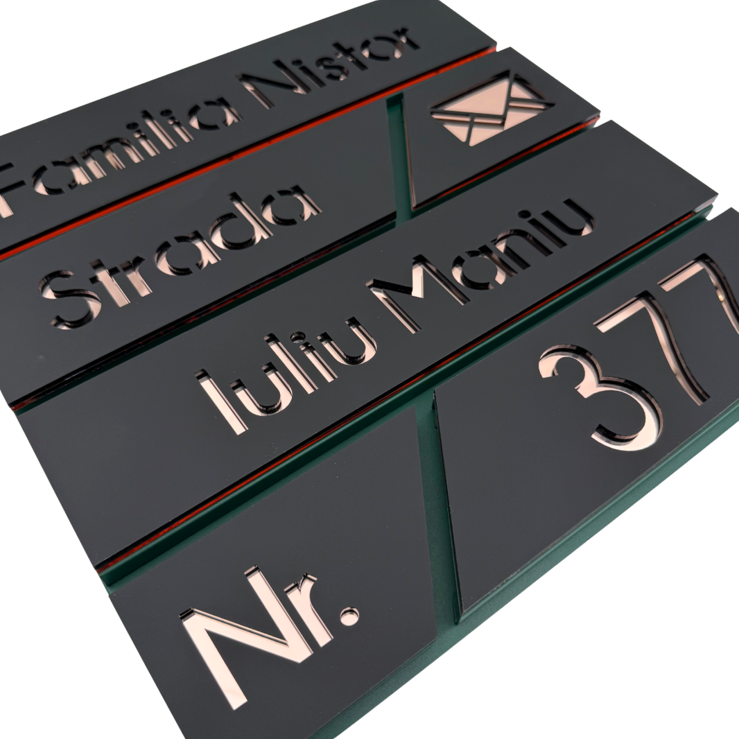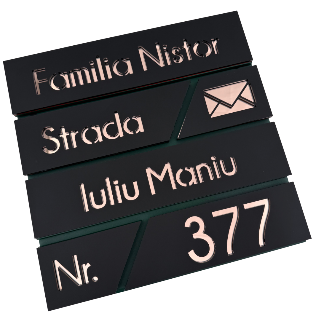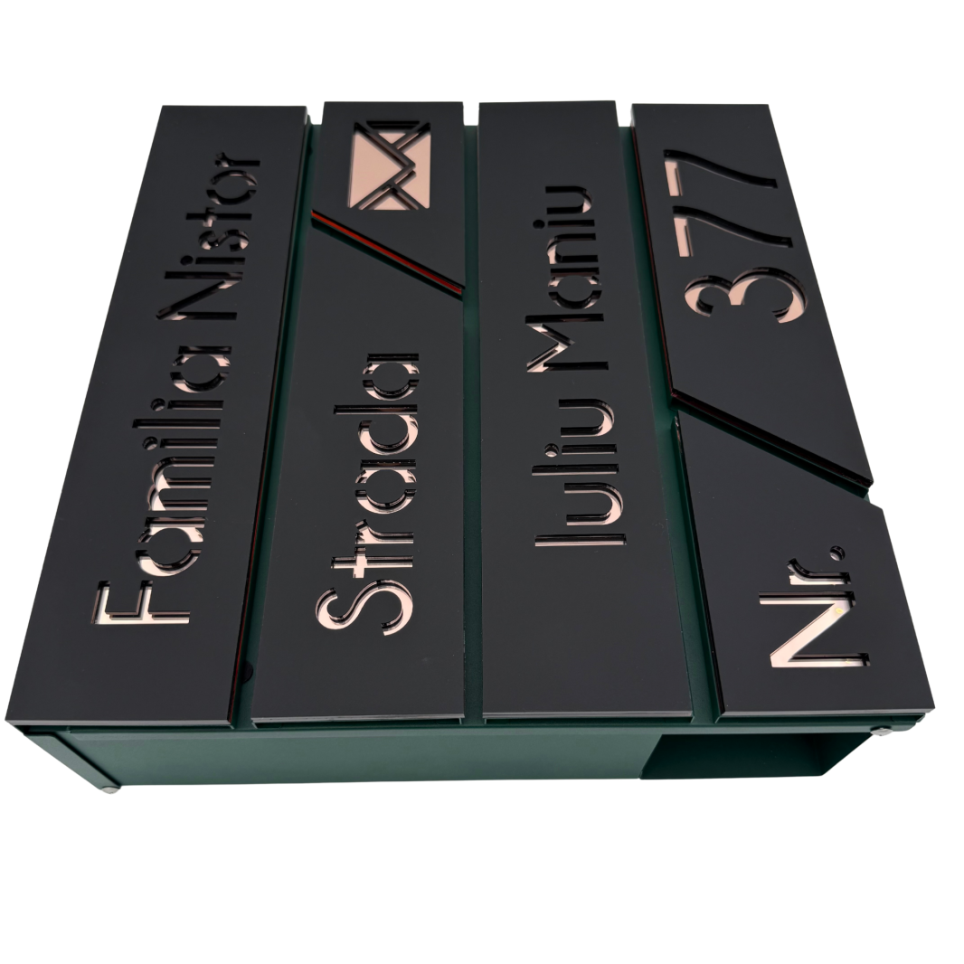 CUTIE POSTALA VERDE - Negru Satinat / Roze Auriu Oglinda - 37x37x11cm