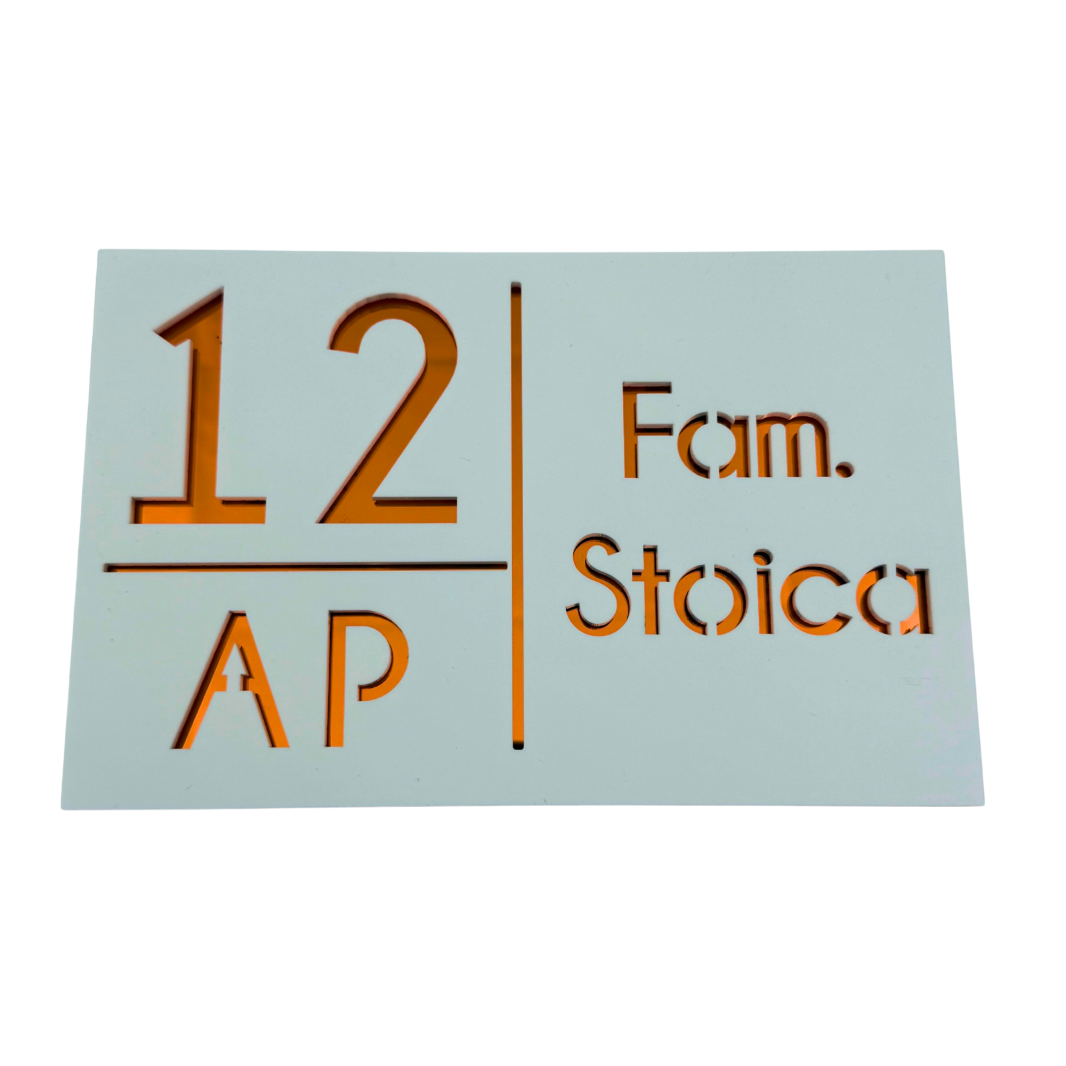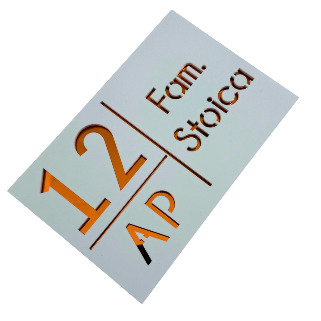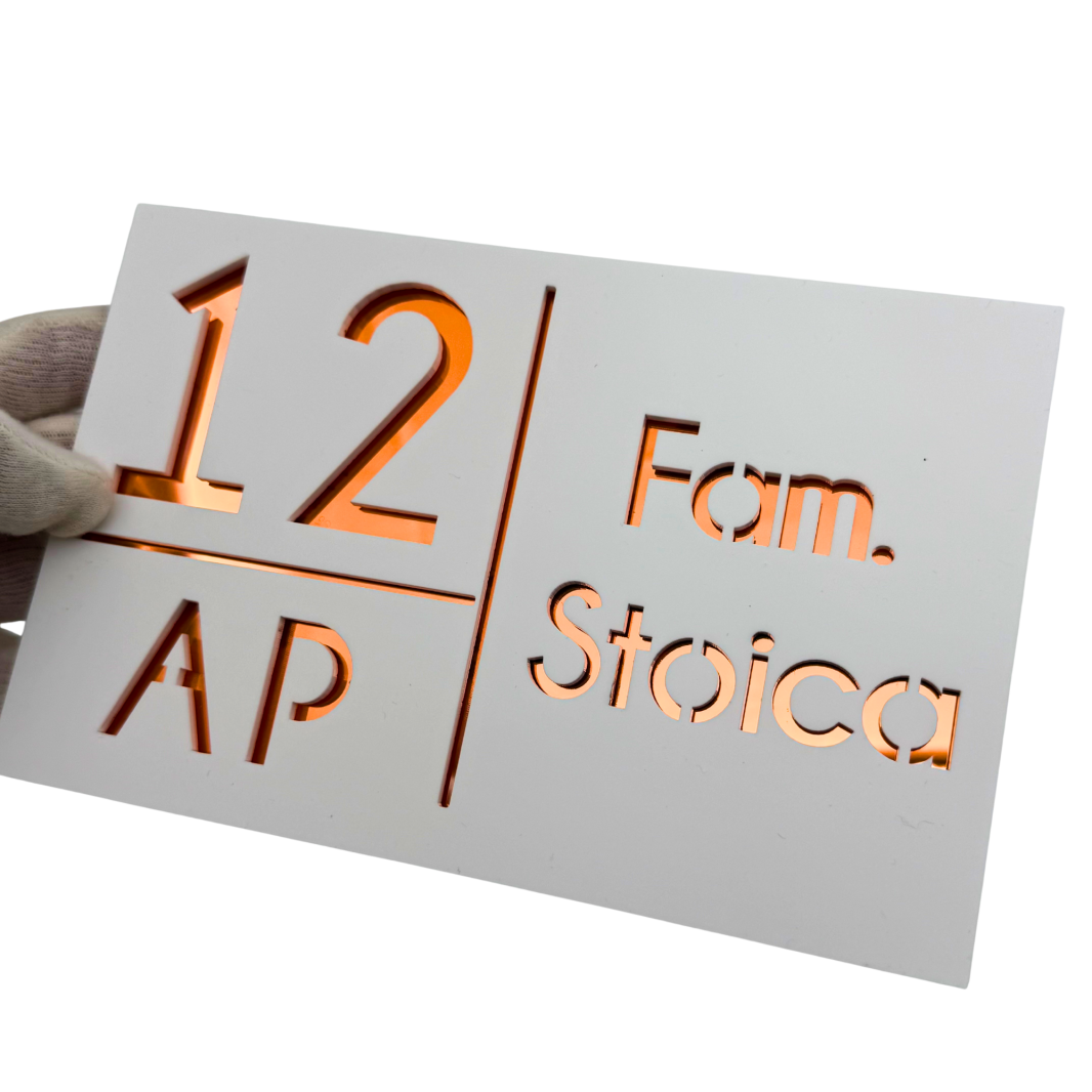 NUMAR APARTMANET PREMIUM - Alb Satinat / Cupru Oglinda - 20x13cm