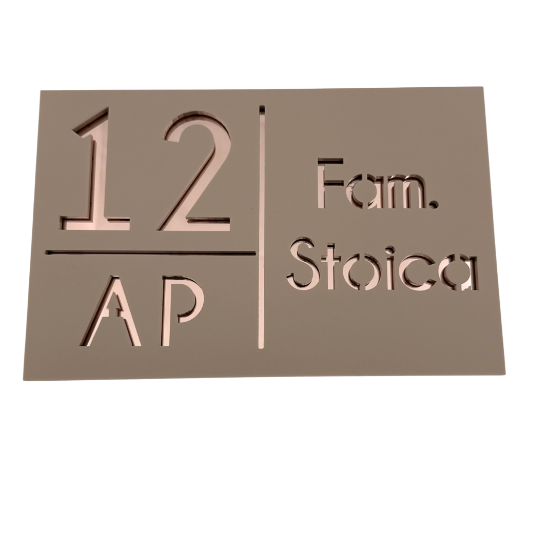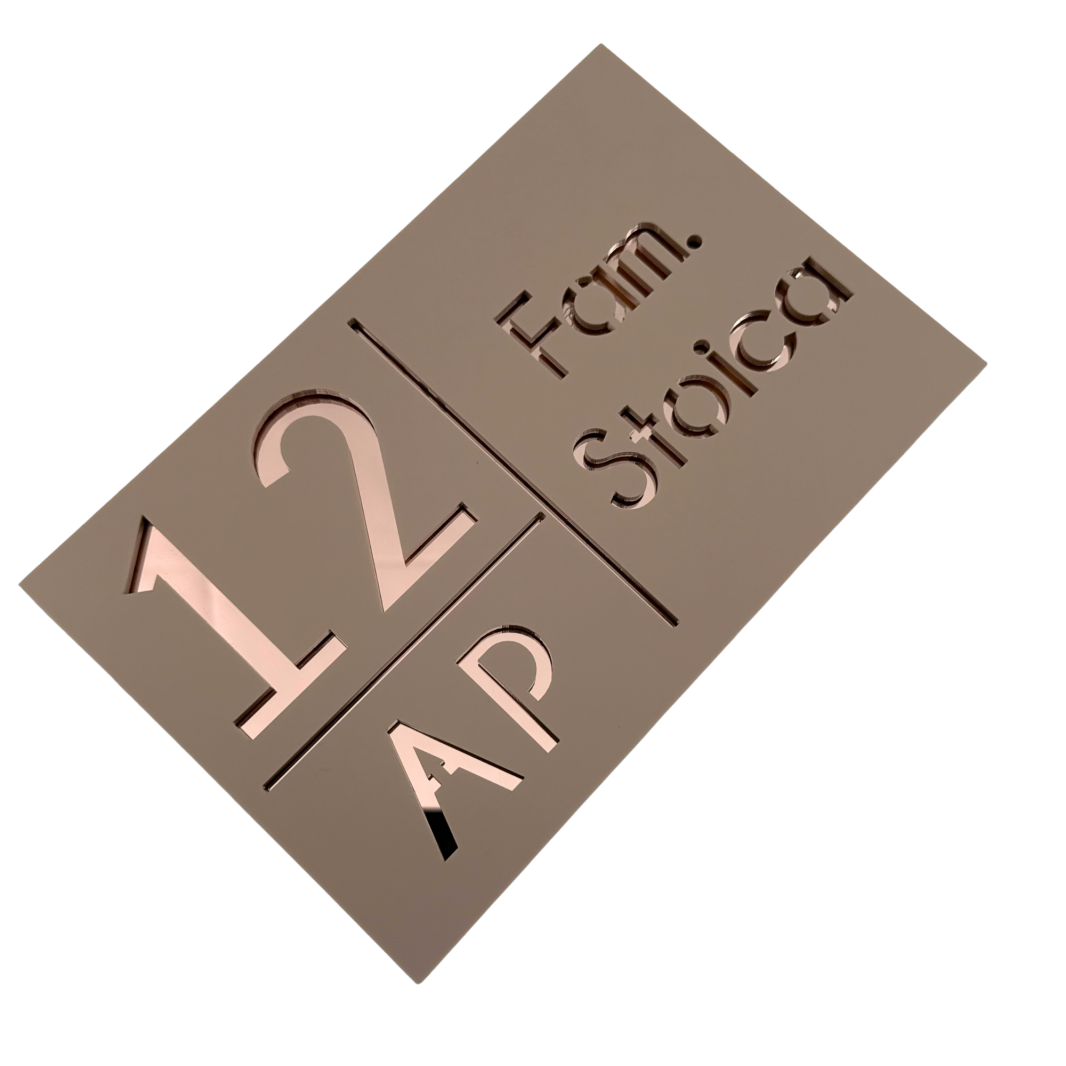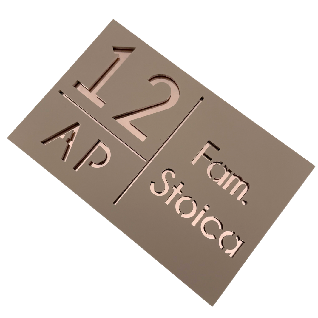 NUMAR APARTMANET PREMIUM - Crem Satinat / Roze Auriu Oglinda - 20x13cm