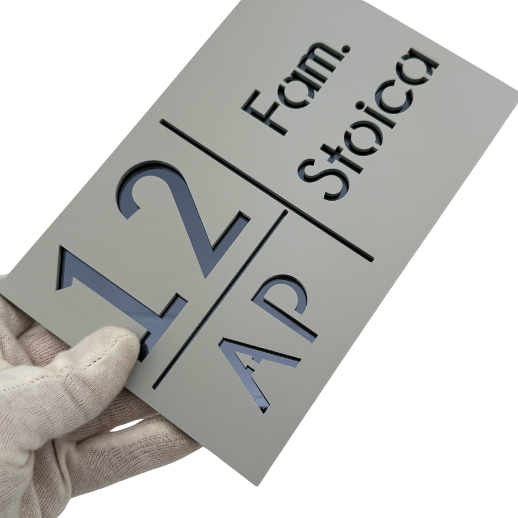 NUMAR APARTMANET PREMIUM - Gri Light Satinat / Gri Antracit Oglinda - 20x13cm