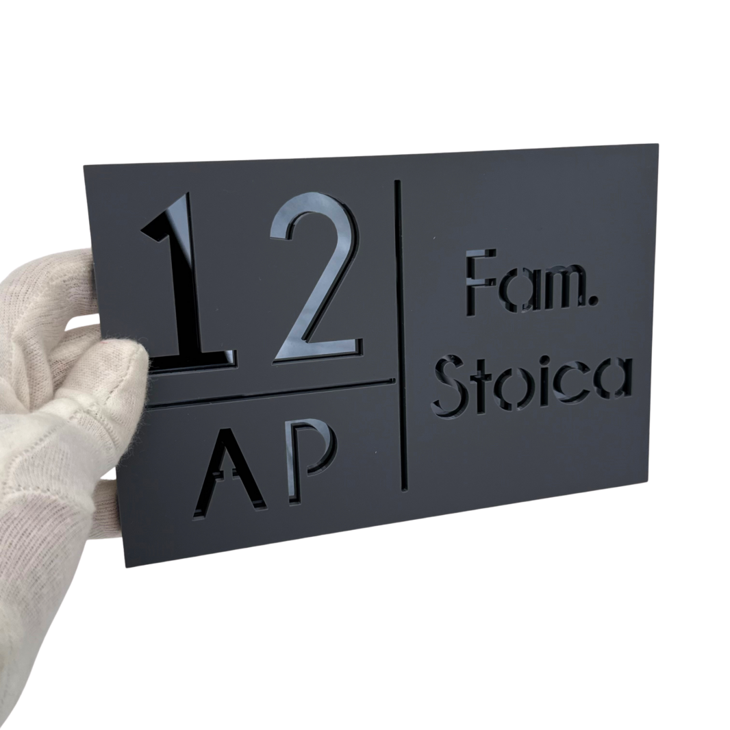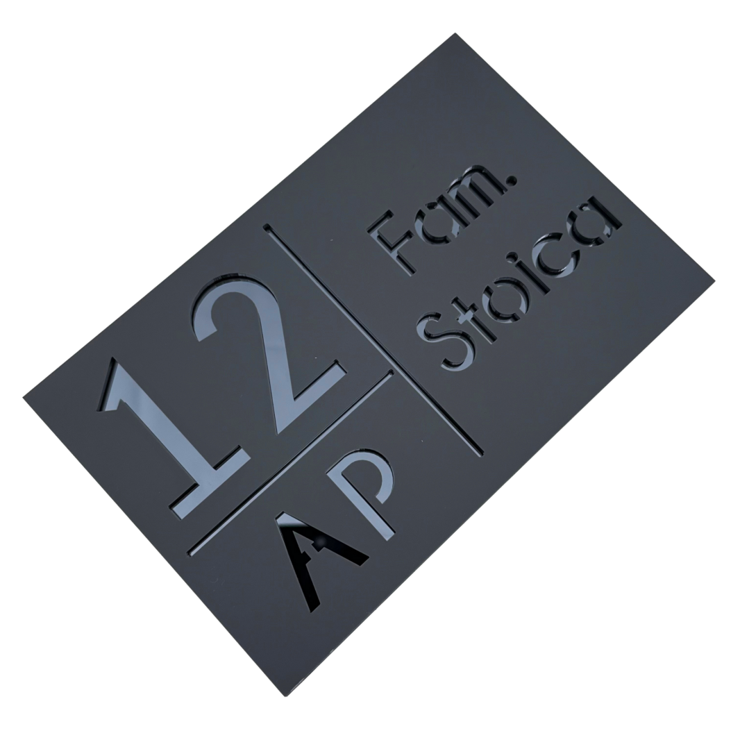 NUMAR APARTMANET PREMIUM - Gri Satinat / Gri Antracit Oglinda - 20x13cm