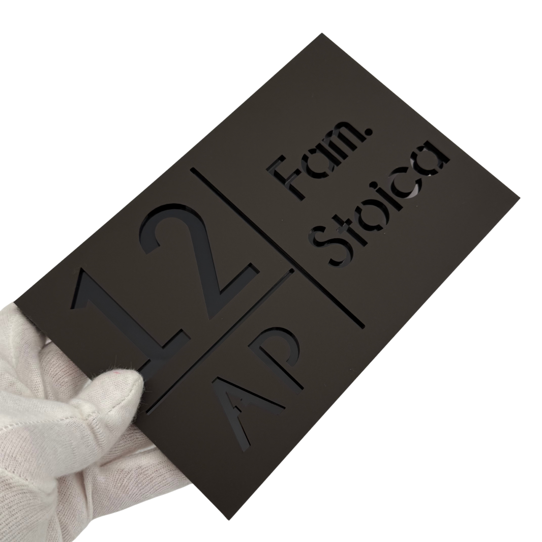 NUMAR APARTMANET PREMIUM - Maro Satinat / Negru Lucios - 20x13cm