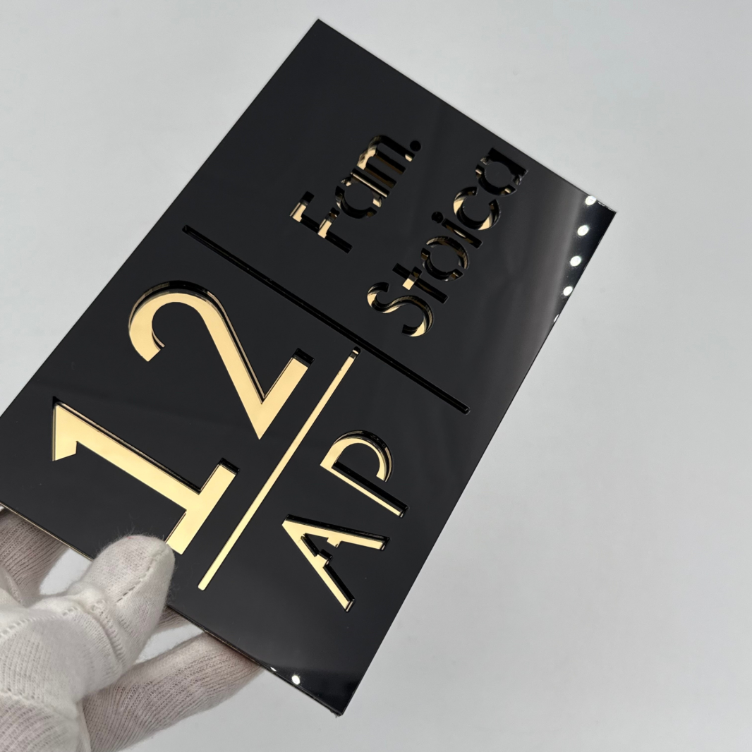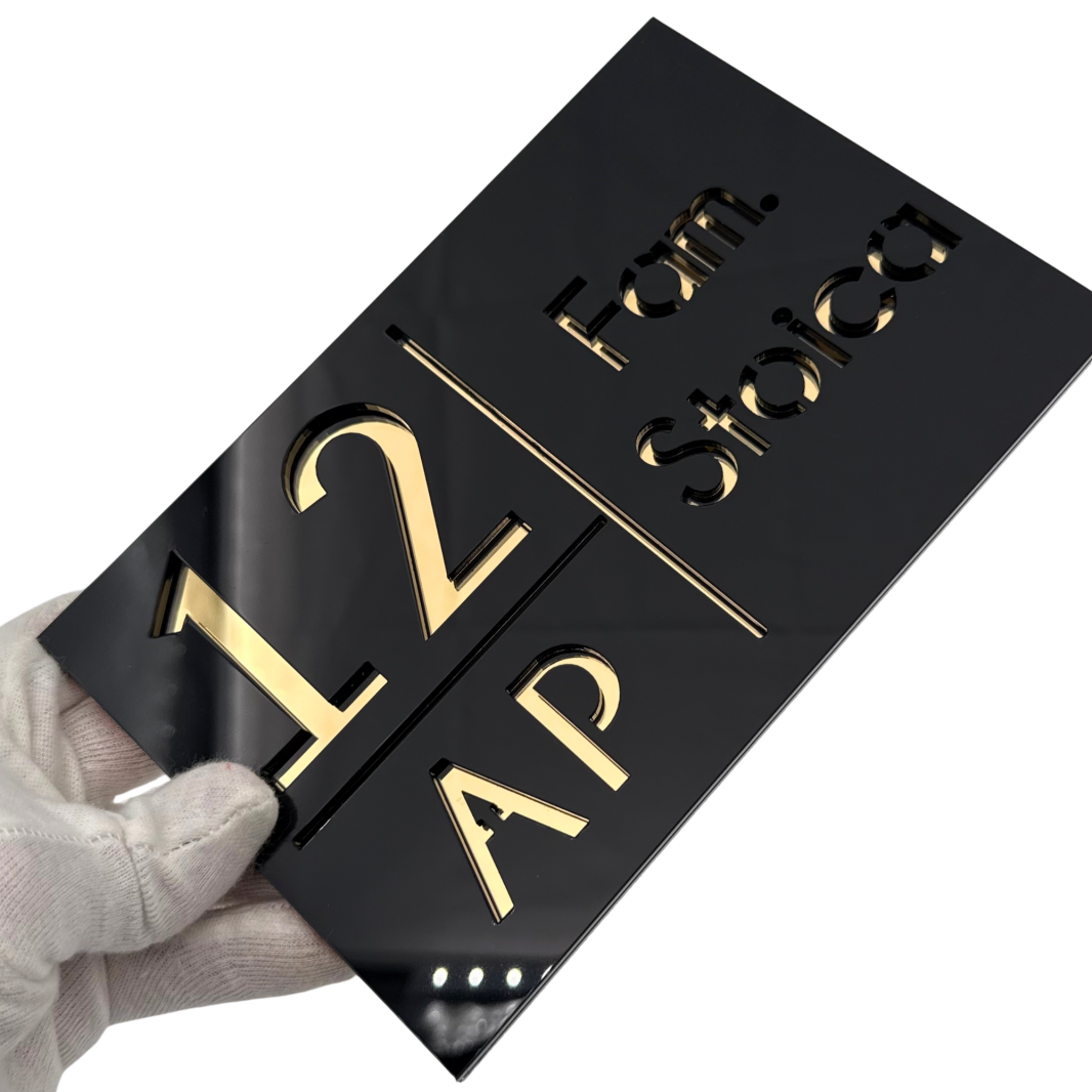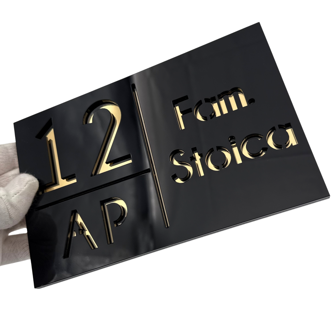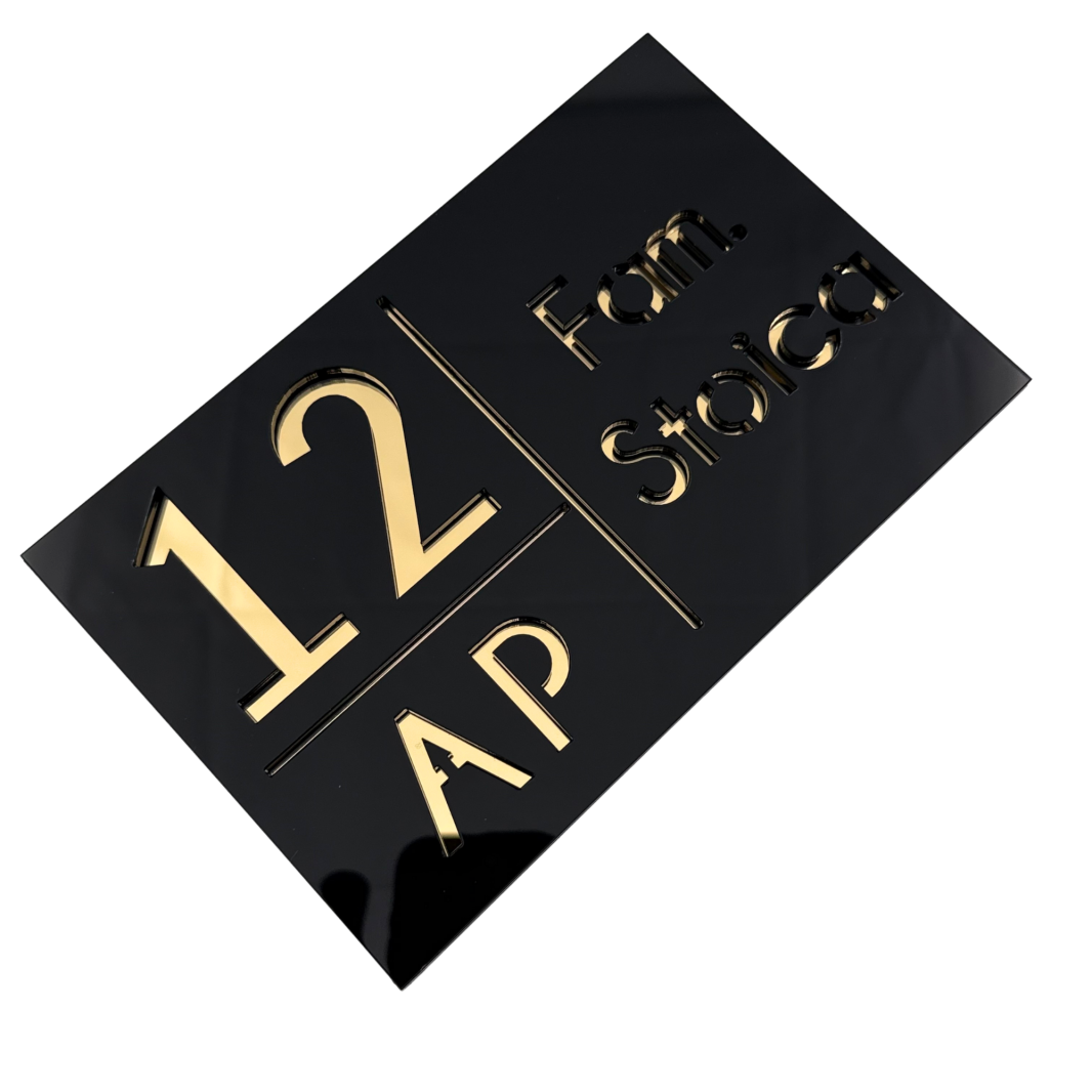 NUMAR APARTMANET PREMIUM - Negru Lucios / Auriu Oglinda - 20x13cm