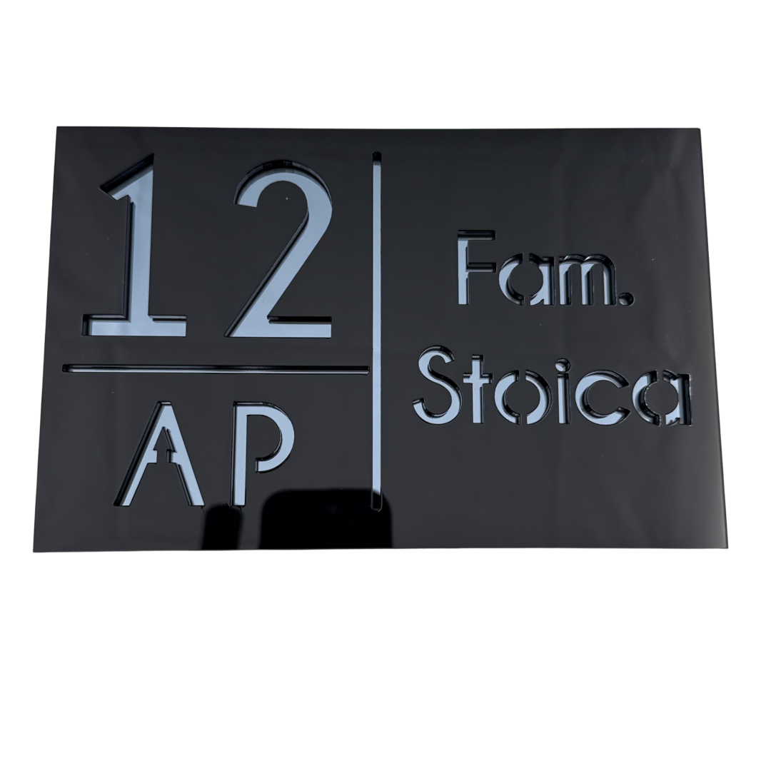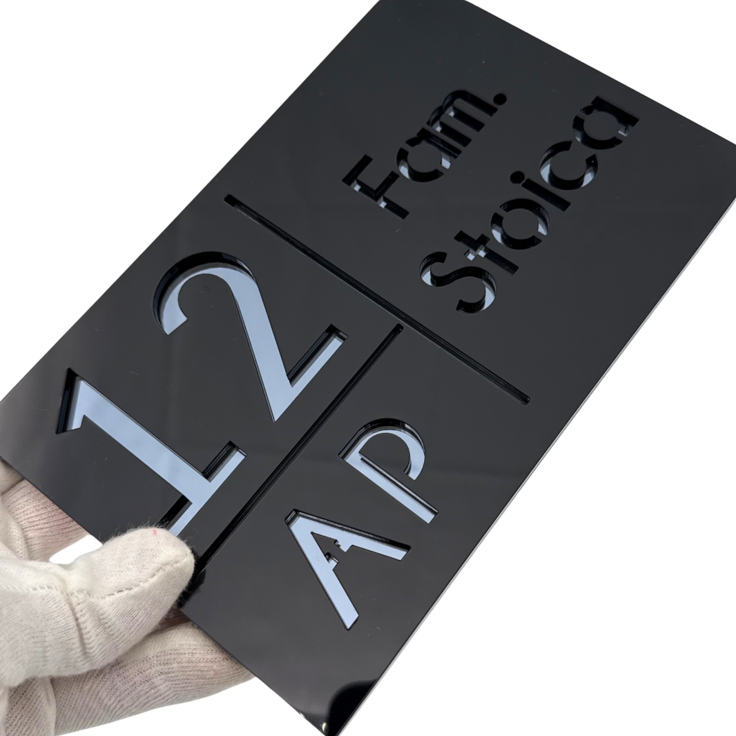 NUMAR APARTMANET PREMIUM - Negru Lucios / Gri Antracit Oglinda - 20x13cm