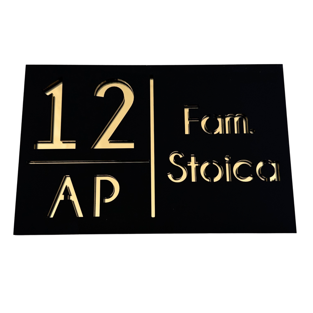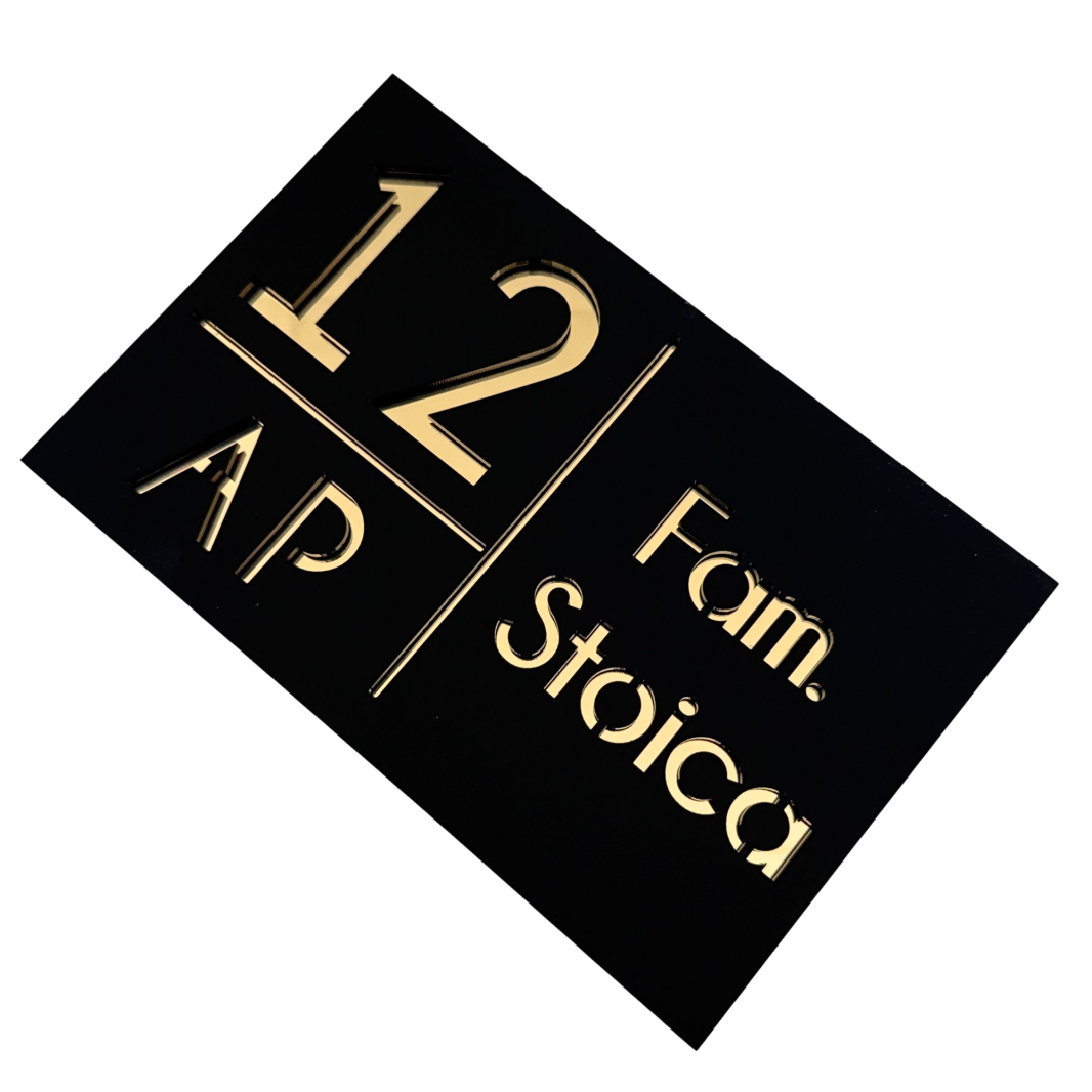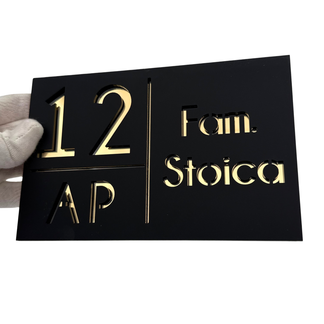 NUMAR APARTMANET PREMIUM - Negru Satinat / Auriu Oglinda - 20x13cm