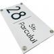 NUMAR CASA PREMIUM - Alb Satinat / Gri Antracit Oglinda / 4 Distantieri Argintii - 28x15cm