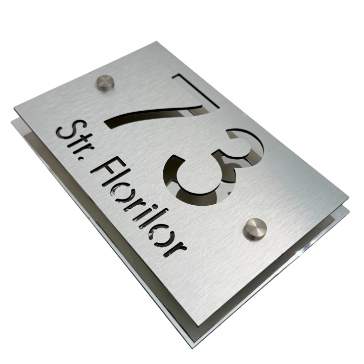 Plăcuța noastră luxoasă și extravagantă este realizată din plexiglas de cea mai înaltă calitate, cu o grosime de 6 mm, pentru a vă oferi o durabilitate și rezistență de neegalat. Fiecare număr și adresă sunt gravate cu precizie și atenție, pentru a crea un efect vizual impresionant și sofisticat.