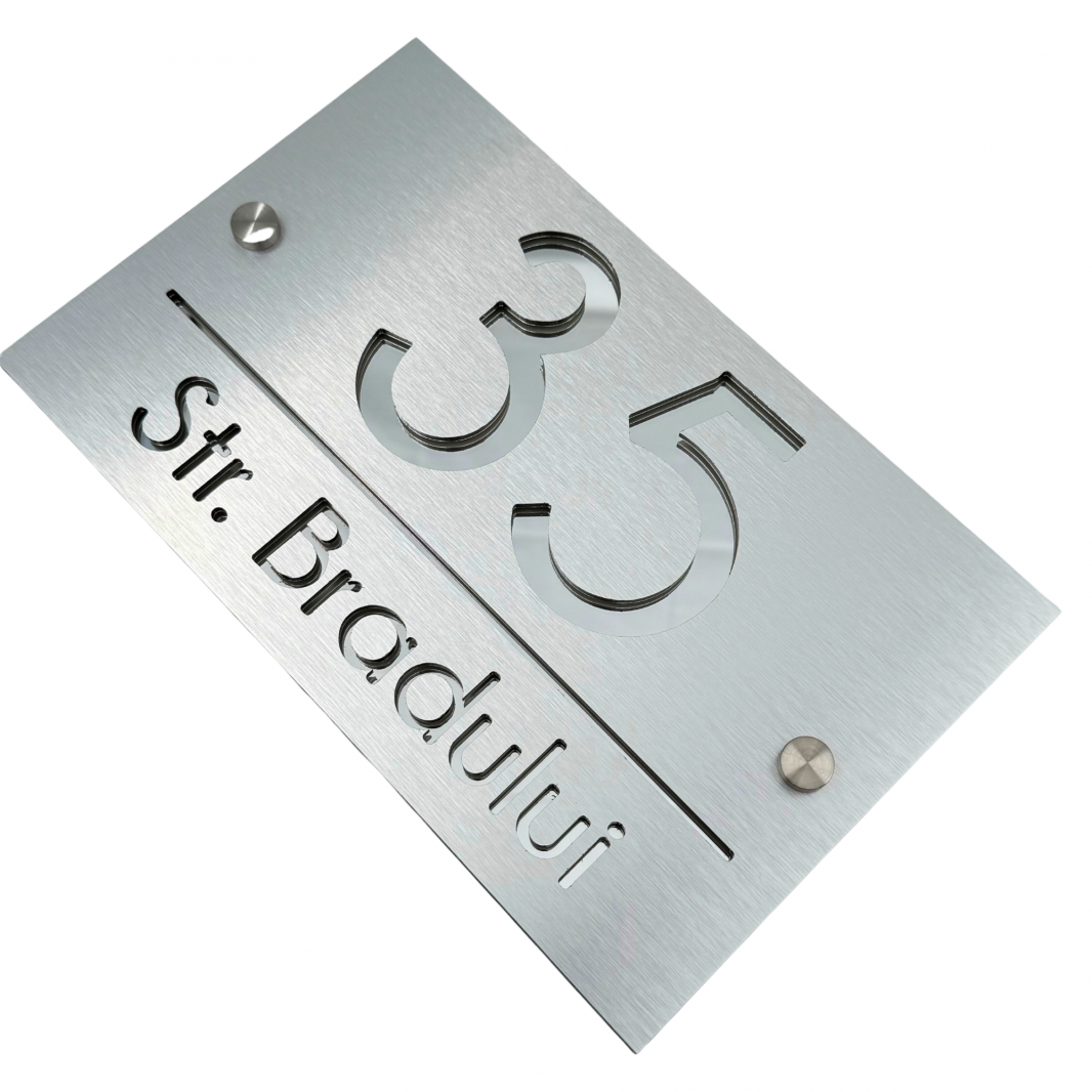 Introducem în lumea rafinamentului și a luxului plăcuța noastră deosebită cu număr și strada. Fabricată cu grijă și atenție la detalii, această piesă excepțională este o adevărată operă de artă pentru casa dumneavoastră.