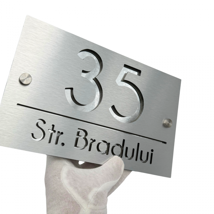 Plăcuța noastră luxoasă și extravagantă este realizată din plexiglas de cea mai înaltă calitate, cu o grosime de 6 mm, pentru a vă oferi o durabilitate și rezistență de neegalat. Fiecare număr și adresă sunt gravate cu precizie și atenție, pentru a crea un efect vizual impresionant și sofisticat.
