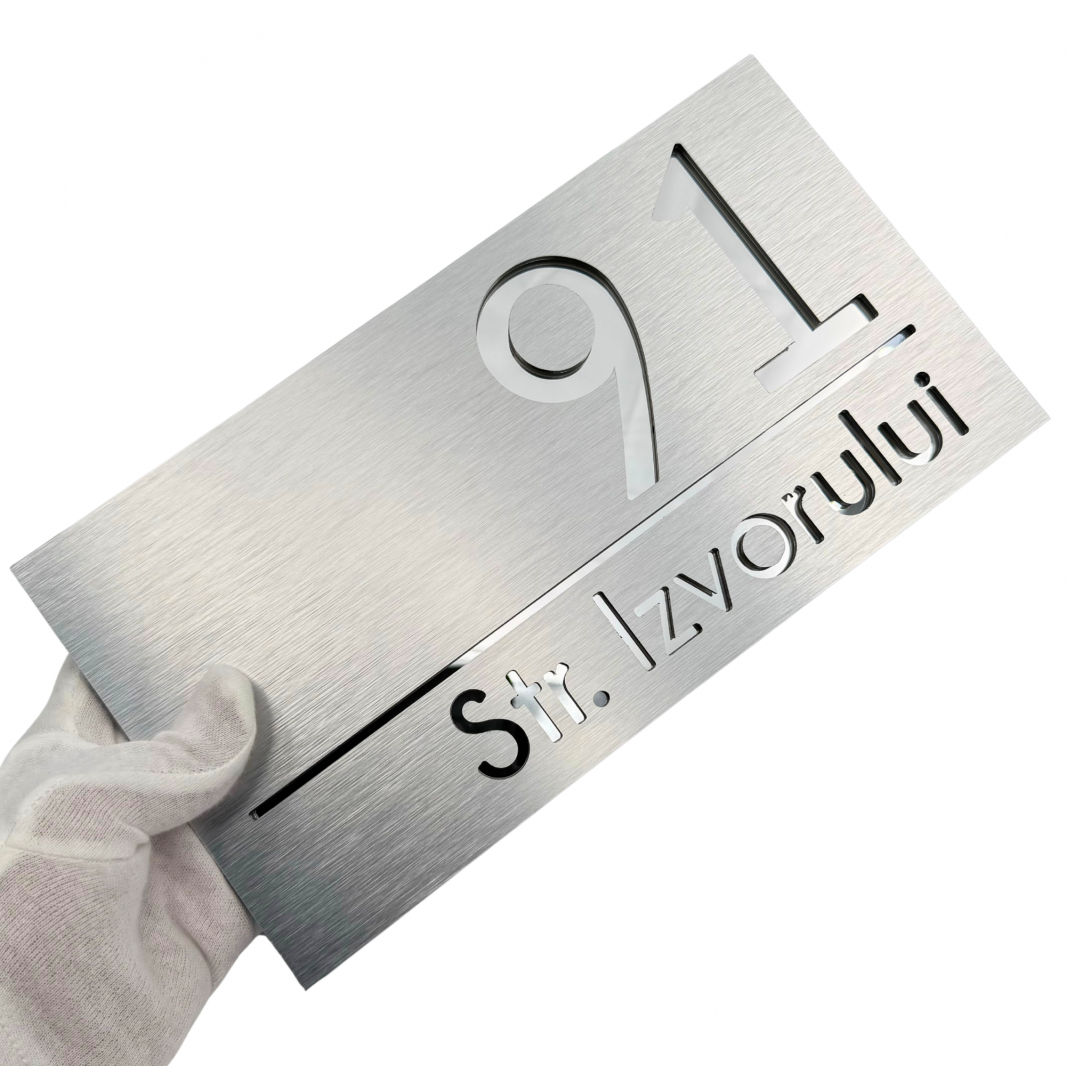 Plăcuța noastră luxoasă și extravagantă este realizată din plexiglas de cea mai înaltă calitate, cu o grosime de 6 mm, pentru a vă oferi o durabilitate și rezistență de neegalat. Fiecare număr și adresă sunt gravate cu precizie și atenție, pentru a crea un efect vizual impresionant și sofisticat.