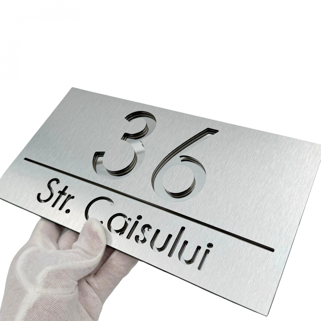 NUMAR CASA PREMIUM - Aluminiu Periat / Argintiu Oglinda - 28x15cm