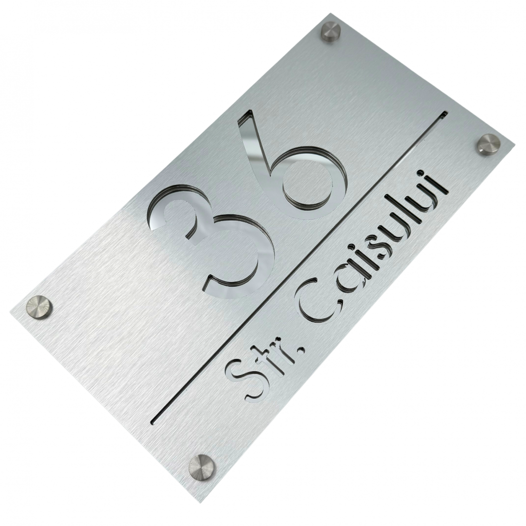 Plăcuța noastră luxoasă și extravagantă este realizată din plexiglas de cea mai înaltă calitate, cu o grosime de 6 mm, pentru a vă oferi o durabilitate și rezistență de neegalat. Fiecare număr și adresă sunt gravate cu precizie și atenție, pentru a crea un efect vizual impresionant și sofisticat.