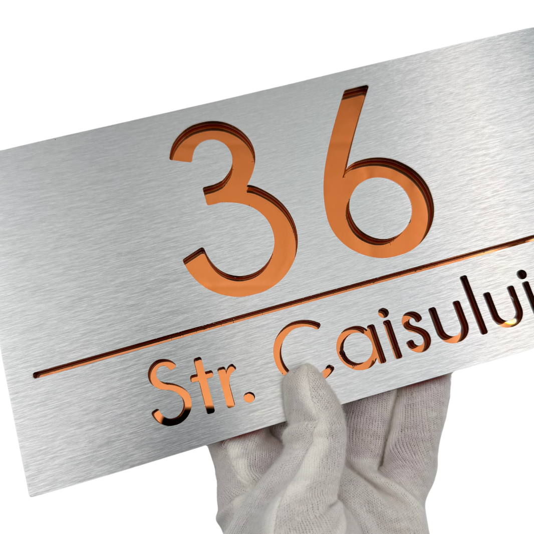 Plăcuța noastră luxoasă și extravagantă este realizată din plexiglas de cea mai înaltă calitate, cu o grosime de 6 mm, pentru a vă oferi o durabilitate și rezistență de neegalat. Fiecare număr și adresă sunt gravate cu precizie și atenție, pentru a crea un efect vizual impresionant și sofisticat.