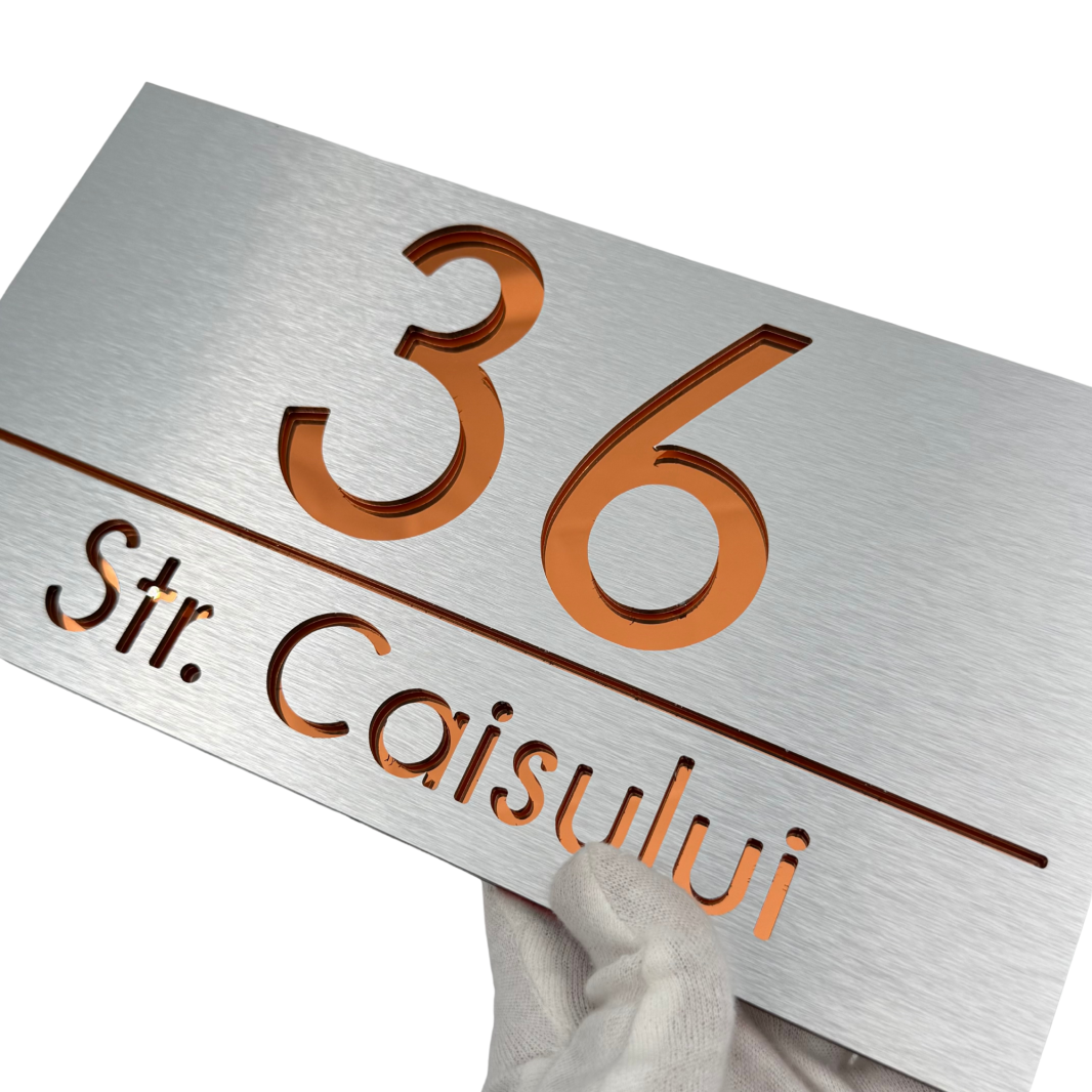 Alegeți plăcuța noastră deosebită pentru număr și adresă și transformați casa sau gardul dumneavoastră într-o adevărată operă de artă. Cu un design luxos și extravagant, această piesă va adăuga un plus de valoare și stil locuinței dumneavoastră, reflectând gustul și personalitatea dumneavoastră excepțională.