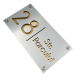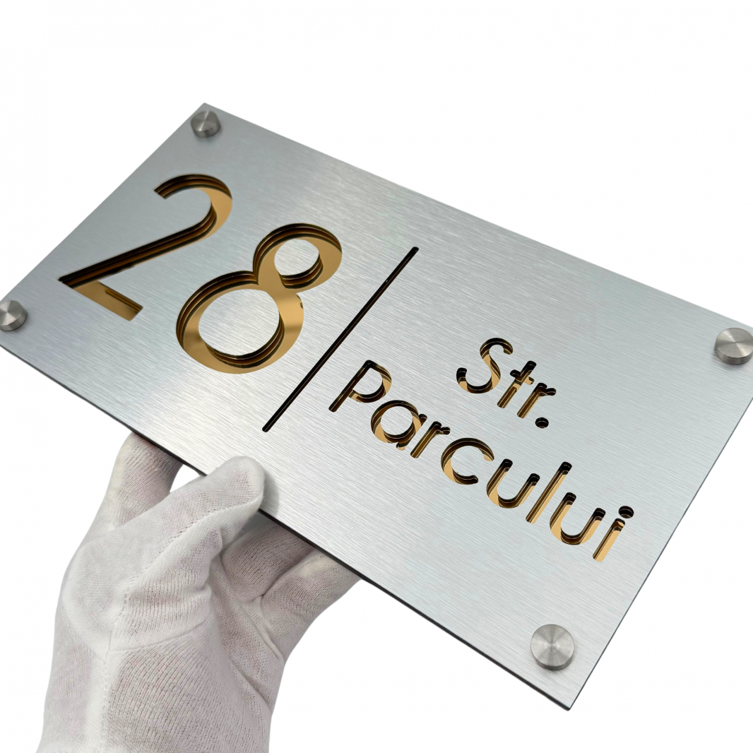 Alegeți plăcuța noastră deosebită pentru număr și adresă și transformați casa sau gardul dumneavoastră într-o adevărată operă de artă. Cu un design luxos și extravagant, această piesă va adăuga un plus de valoare și stil locuinței dumneavoastră, reflectând gustul și personalitatea dumneavoastră excepțională.