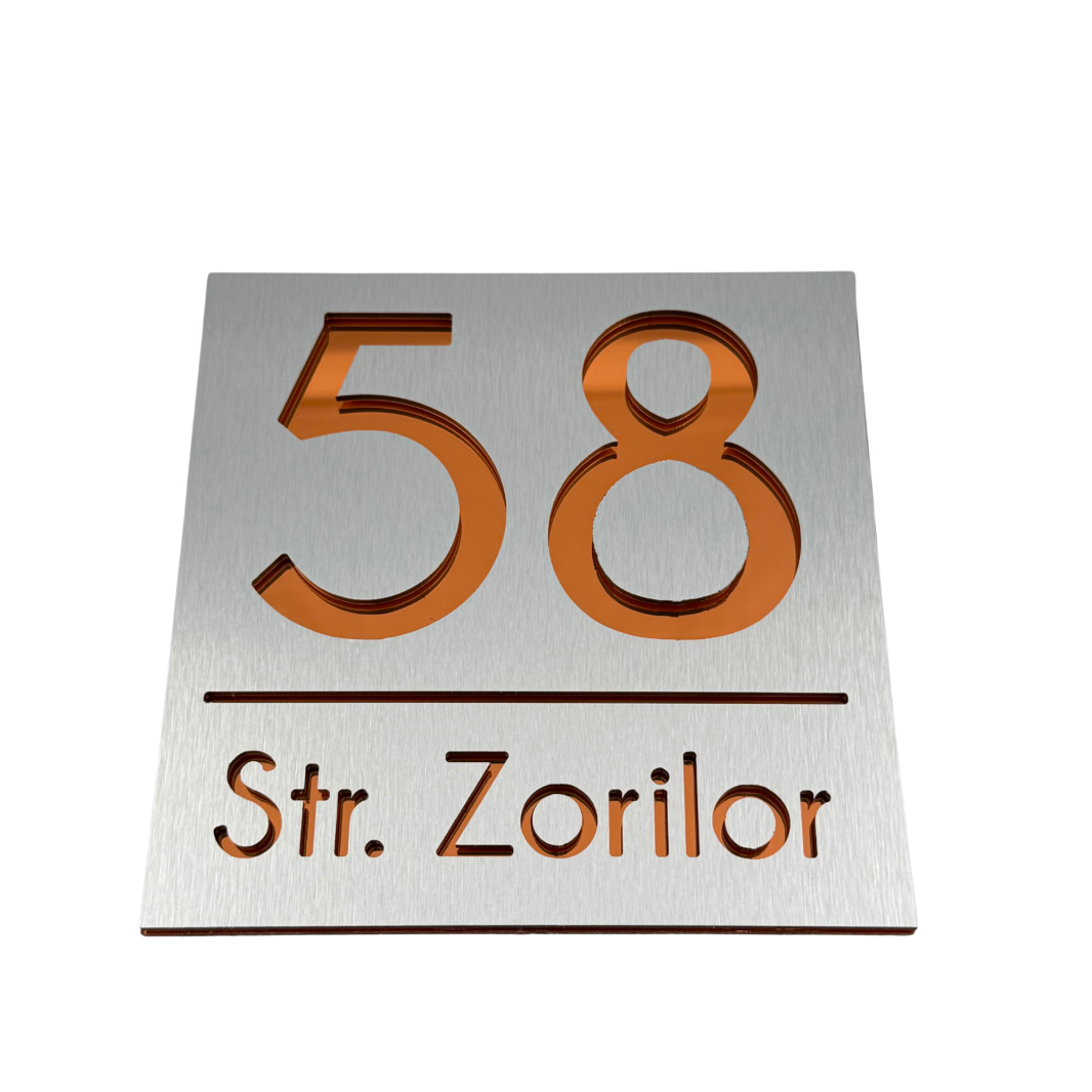 NUMAR CASA PREMIUM - Aluminiu Periat / Cupru Oglinda - 17x17cm