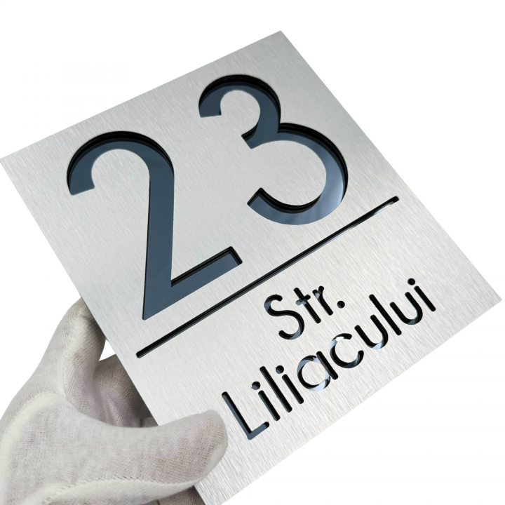 Plăcuța noastră luxoasă și extravagantă este realizată din plexiglas de cea mai înaltă calitate, cu o grosime de 6 mm, pentru a vă oferi o durabilitate și rezistență de neegalat. Fiecare număr și adresă sunt gravate cu precizie și atenție, pentru a crea un efect vizual impresionant și sofisticat.