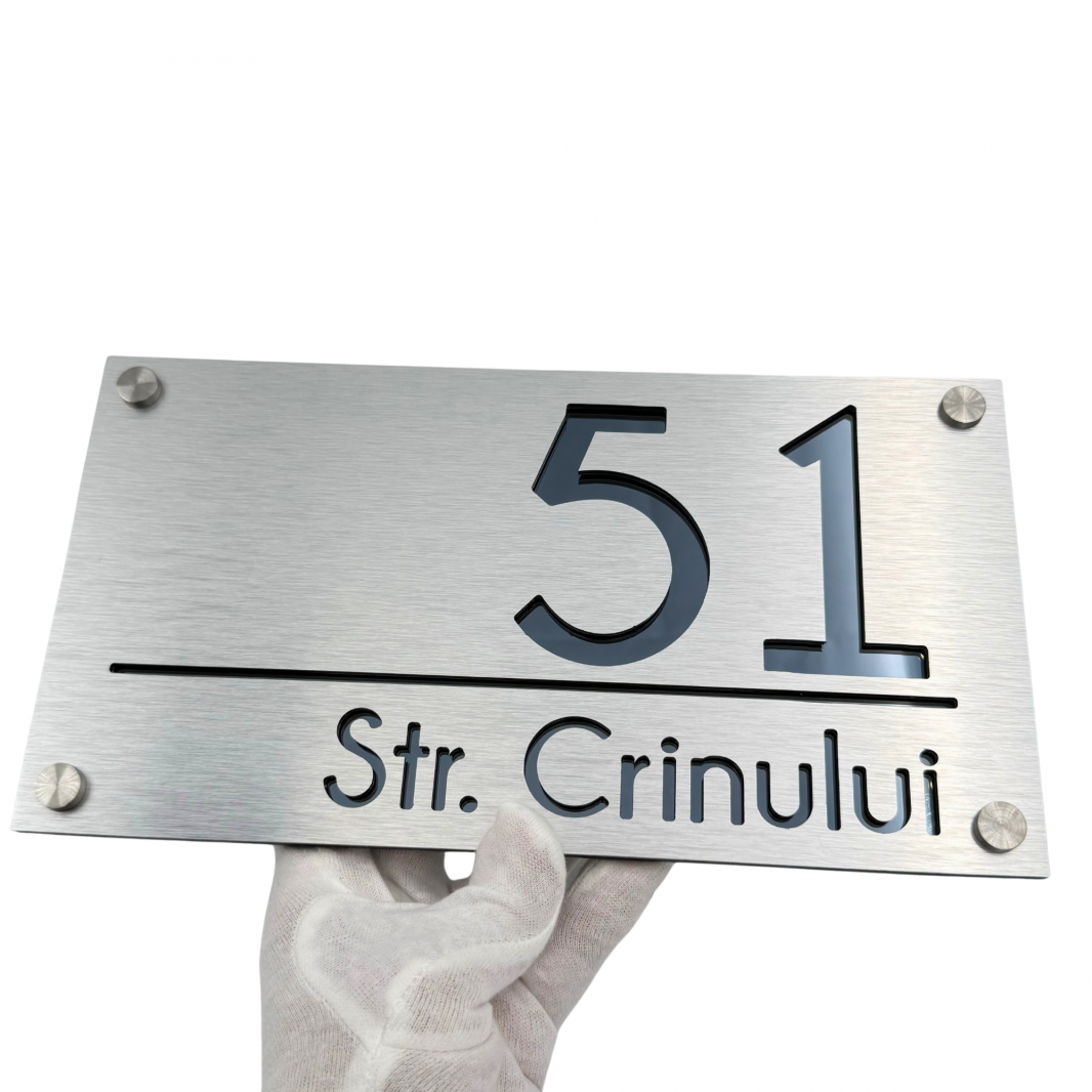 Plăcuța noastră luxoasă și extravagantă este realizată din plexiglas de cea mai înaltă calitate, cu o grosime de 6 mm, pentru a vă oferi o durabilitate și rezistență de neegalat. Fiecare număr și adresă sunt gravate cu precizie și atenție, pentru a crea un efect vizual impresionant și sofisticat.