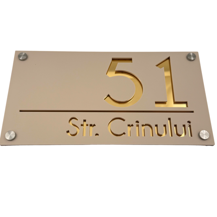 Plăcuța noastră luxoasă și extravagantă este realizată din plexiglas de cea mai înaltă calitate, cu o grosime de 6 mm, pentru a vă oferi o durabilitate și rezistență de neegalat. Fiecare număr și adresă sunt gravate cu precizie și atenție, pentru a crea un efect vizual impresionant și sofisticat.