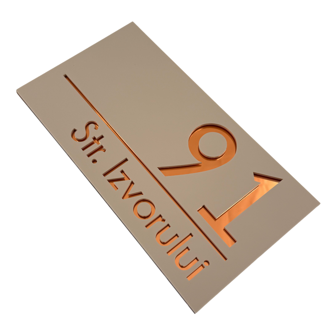 NUMAR CASA PREMIUM - Crem Satinat / Cupru Oglinda - 28x15cm