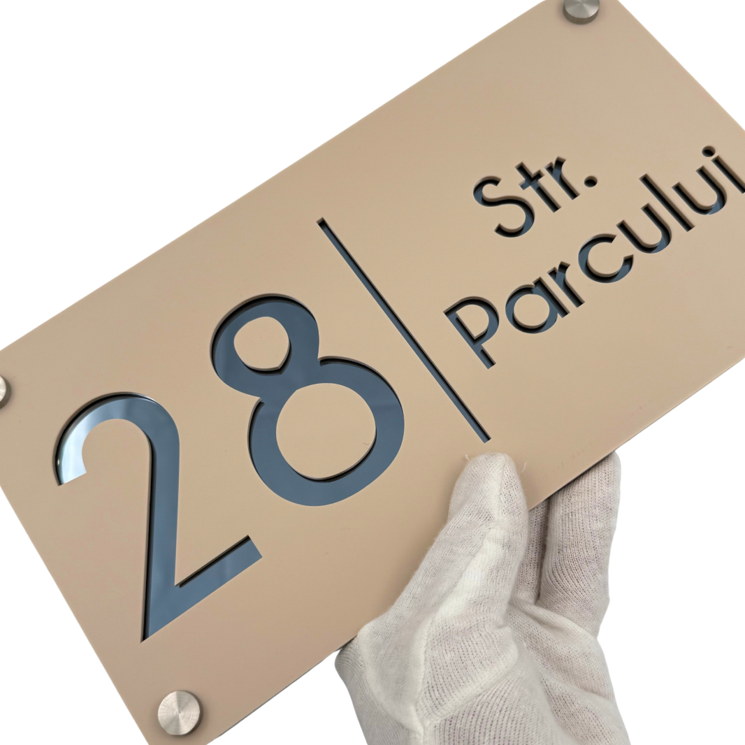 Introducem în lumea rafinamentului și a luxului plăcuța noastră deosebită cu număr și strada. Fabricată cu grijă și atenție la detalii, această piesă excepțională este o adevărată operă de artă pentru casa dumneavoastră.