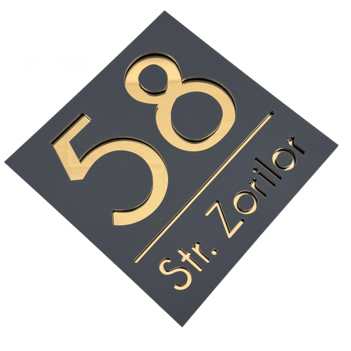 NUMAR CASA PREMIUM - Gri Satinat / Auriu Oglinda - 17x17cm
