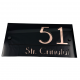 NUMAR CASA PREMIUM - Negru Lucios / Auriu Roze Oglinda / 2 Distantieri Negrii - 28x15cm
